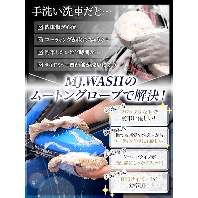 ✅【コーティング施行車にもご使用可能!】洗車スポンジでは体験出来なかった、『力入らずで撫でる感覚』の洗車がMJ. Washのムートングローブで可能に。フワもふな天然羊毛でコーティングを劣化させる事無く、大切な愛車をピカピカに洗車出来ます。