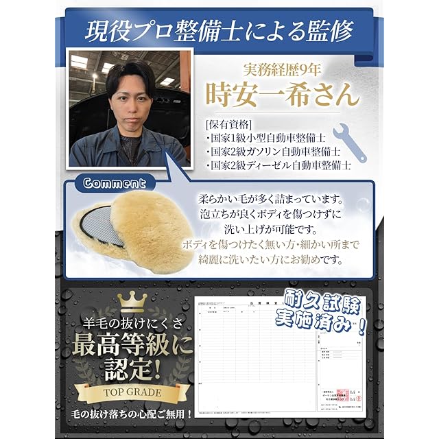 ✅【日々の手洗い洗車をスピーディー且つ快適に】洗車スポンジの倍以上の面積で、ムートングローブをボディに滑らせる様に一気に洗車出来ます。羊毛部分は耐久試験にて最高等級の認定を頂きました。洗車の途中で羊毛が抜け落ち、愛車に付着すると言った心配はございません。