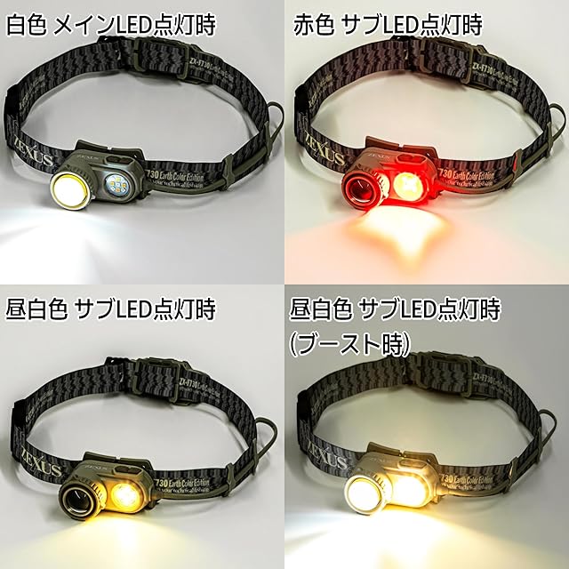 商品名:ZEXUS(ゼクサス) LED ヘッドライト ZX-F730 充電式 ZR-02バッテリー付属 [最大1200ルーメン メインLED点灯時間:最大31時間 白色/電球色/赤色]
