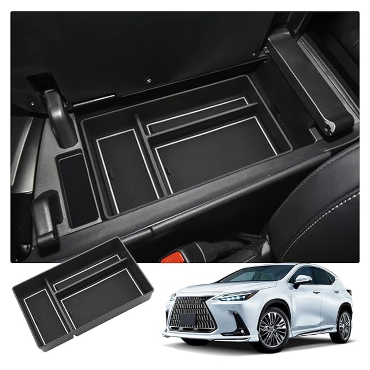 商品名:【RUIYA】新型 レクサス NX 専用コンソールトレイ NX250 NX350 NX350h NX450h+アームレスト収納トレイ コンソールボックス 小物入れトレイ カーアクセサリー 内装パーツ センターコンソールトレイ コンソールアームレストボックス ラバーマット付き (ホワイト)