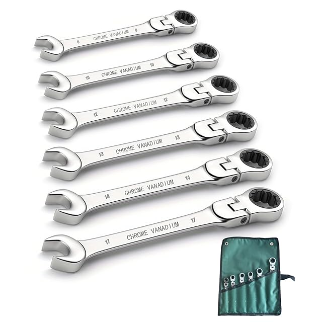 BTtime フレックスラチェットレンチ 6本組 首振りラチェット 両用ヘッド スパナ レンチ コンビネーションレンチ 収納袋付き 角度調整可能 72ギア 車メンテナンス 自動車組み立て DIY 修理用