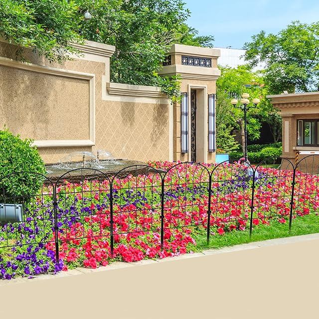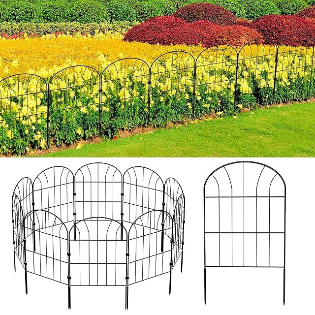 MITOUER ガーデンフェンス アイアンフェンス 10枚セット ブラック 防錆 植物や花を保護 花壇 菜園 柵 塀 庭 犬 ガーデン 仕切りフェンス 簡単設置 高さ0.6m×長さ0.32m 全長3.28m 日本語説明書付き