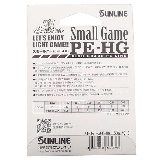 商品名:サンライン(SUNLINE) PEライン ソルティメイト スモールゲーム HG 150m 0.3号 5lb サクラピンク