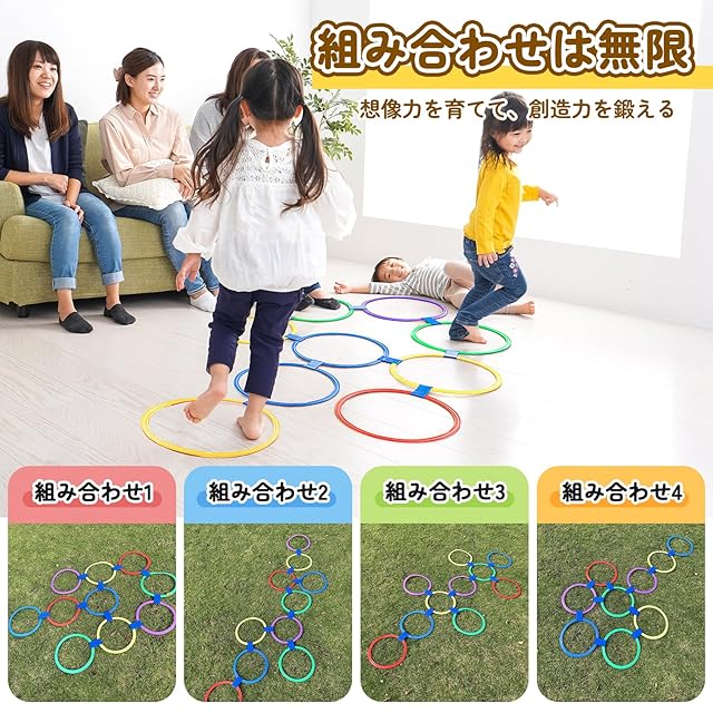 【安心素材】環境にやさしいPE素材を採用して、軽量で柔らかくて、ケンケンパを繰り返しても変形にくく耐久性があります。お子様が怪我をするをことを心配ずに楽に遊べます。