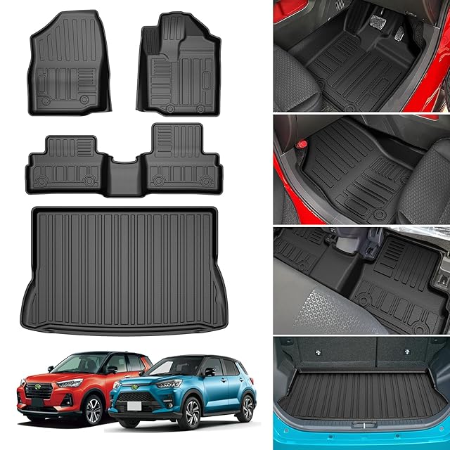 【適合車種】トヨタ ライズ/ダイハツ ロッキー フロアマット (H31年11月-現行) 。セット内容:フロアマット×2P、セカンドマット×1P,ラゲッジマット×1P(合計4PCSセット)。全グレード対応:A200A/210A型・A200S/210S型。