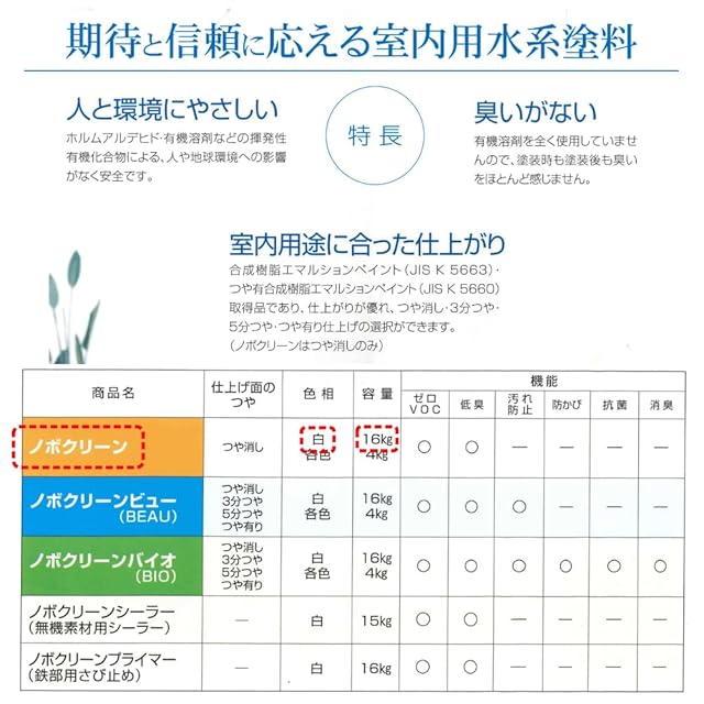 商品名:大日本塗料 ノボクリーン 白(艶消し) 16kg ホワイト