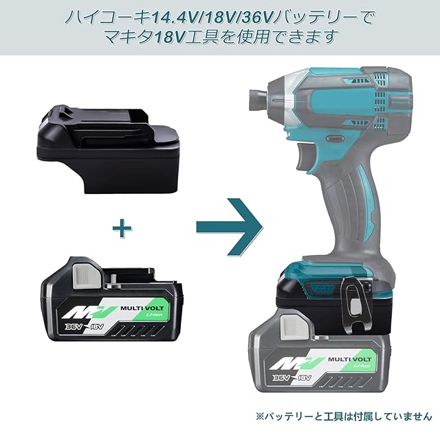 【対応機種】ハイコーキ対応14.4V/18V/36Vバッテリーでマキタ対応18V工具を使用できます。