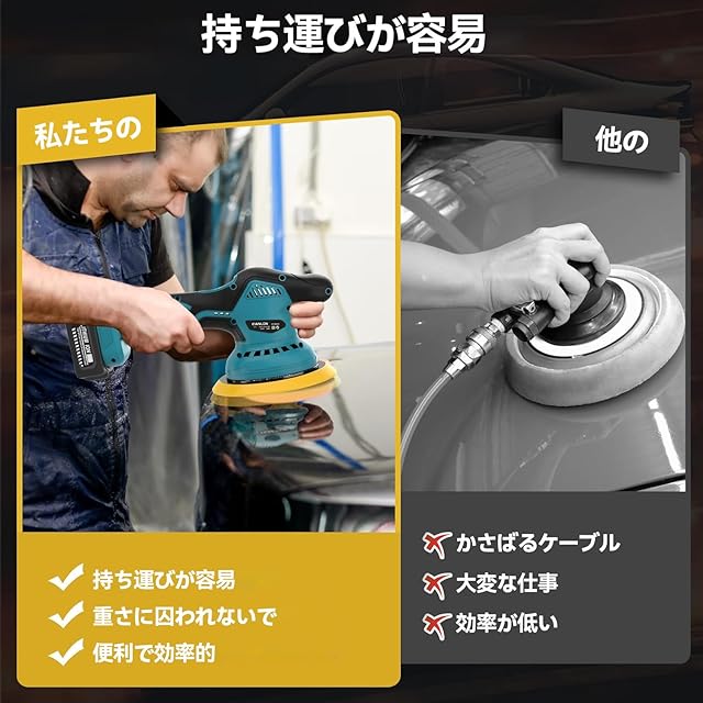 【卓越したパフォーマンス】デュアルアクションのランダム軌道運動設計により、車両の塗装面の過熱や損傷を避けるために最適な動きを実現します。9mm のスロー軌道により、力が均一になり、研磨領域が大きくなります。従来のものと比較して、取り外しが簡単です。操作スキルのないすべての塗装車両の渦、傷、欠陥、初心者に最適です。