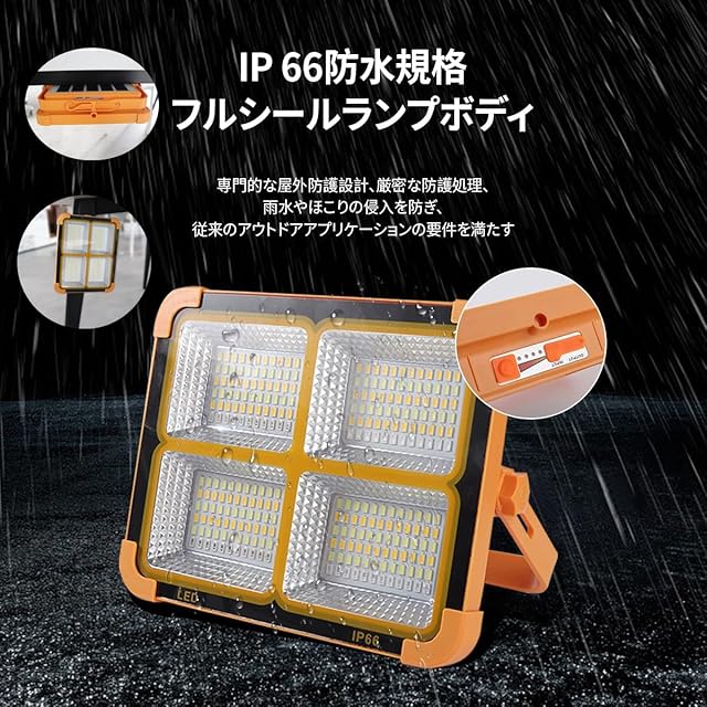 【IP66防水・強力磁気吸着】LED投光器はIP66防水防塵認証を取得しており、雨や雪の天候でも正常に動作します。 強力な磁石を備えた投光器はあらゆる金属面に貼り付けることができるため、複雑な建設現場での使用に適しています。 ※本製品は水に浸すことはできませんのでご注意ください。
