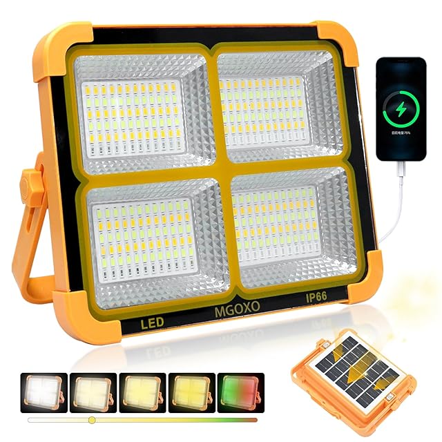 MGOXO 投光器 LED 充電式 作業灯 16000mAH大容量 超高輝度 240W 15000LM ソーラー充電/Type-c充電 便携式 5色切替 無段階調光 太陽光発電 IP66防水 磁気設計 折り畳み式 アウトドア キャンプ 夜釣り登山 日本語説明書付き (16000mAH)