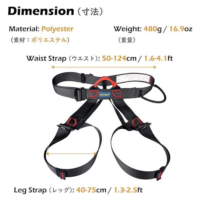 ✅【耐荷重】-- 5kN(500KG)、耐摩耗性に優れ、快適感向上のロッククライミングハーネス