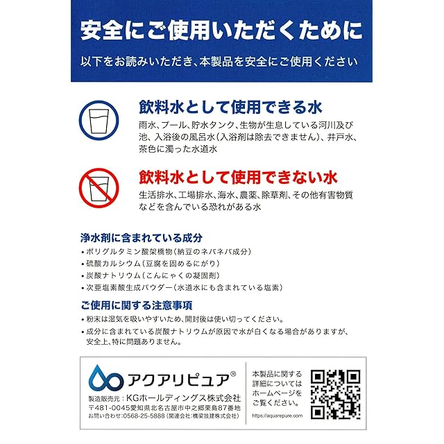 商品名:アクアリピュア 220 浄水キット, 水220リットル分、川や池の水から簡単に安全に飲料水・生活用水を作れる浄水剤