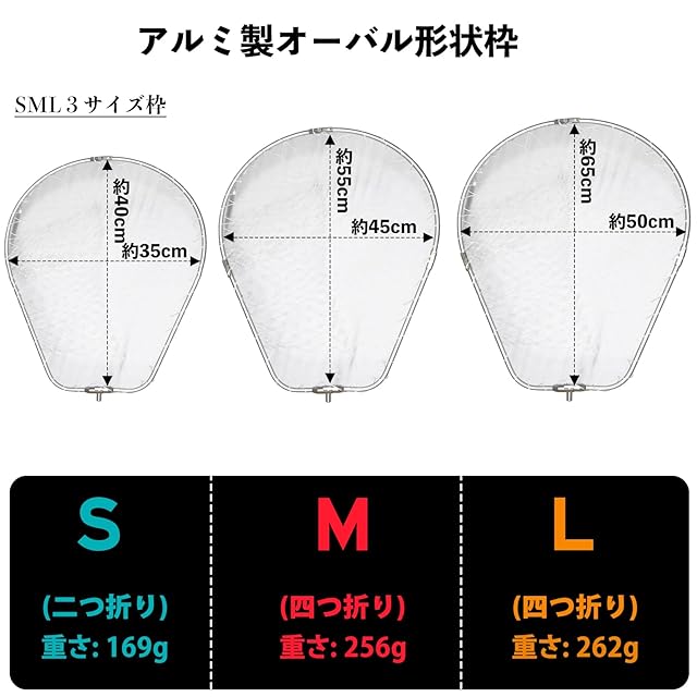 【商品仕樣】枠サイズ:W50×H65cm、網の深さ:75cm、枠形状:オーバルフレーム ネジ径:4分 (日本地元メーカーのランディングポールも対応可) 重量:約262g