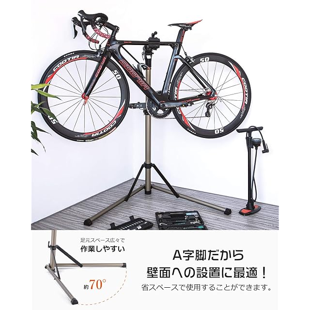 商品名:CXWXC 自転車 メンテナンススタンド 安定感 高さ調節 角度調節 ワークスタンド 折りたたみ式 工具トレー付 軽量 コンパクト 収納、持ち運びに便利 シャンパン (RS-100)