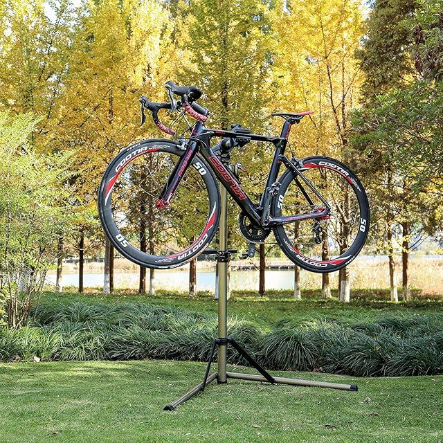 CXWXC 自転車 メンテナンススタンド 安定感 高さ調節 角度調節 ワークスタンド 折りたたみ式 工具トレー付 軽量 コンパクト 収納、持ち運びに便利 シャンパン (RS-100)