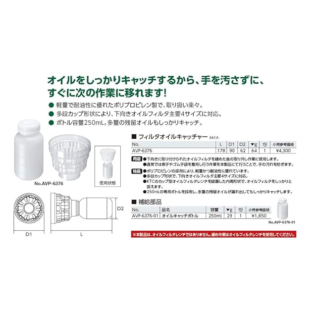 商品名:京都機械工具(KTC) フィルタオイルキャッチャー AVP-6376