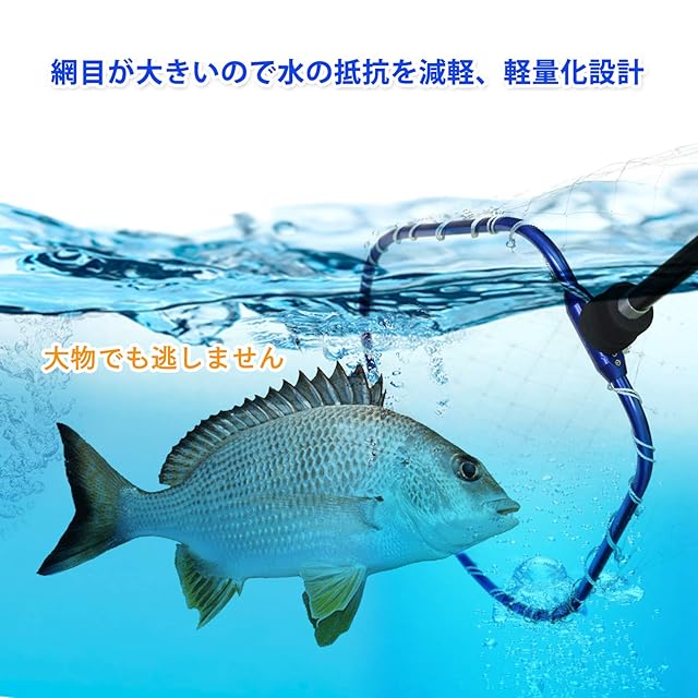 【ナイロン】 形状が崩れにくい手すきナイロンを採用。ルアーのフックが絡みにくく、魚が傷つきにくい網目。