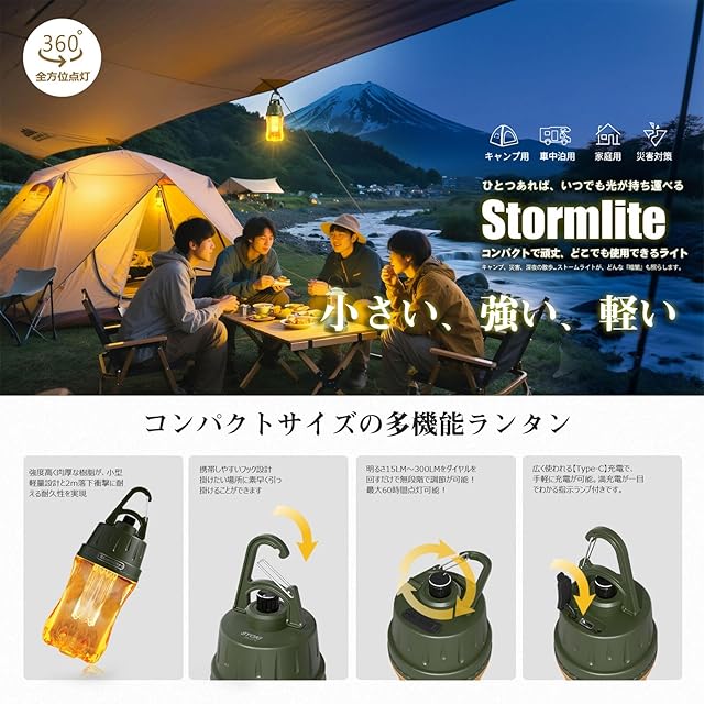 商品名:GOODGOODS LED ランタン キャンプランタン 300lm 大光量 雰囲気照明 電球色 実用点灯3~60時間 無段階調光 IP65 防水 コンパクト 小型 USB-C充電式 ハイキング ハンドランプ コードレス テントライト ソロキャンプ キャンプ アウトドア 登山 夜釣り 釣り 防災 停電 緊急 非常用 緊急防災 停電 防災グッズ SK-D7S