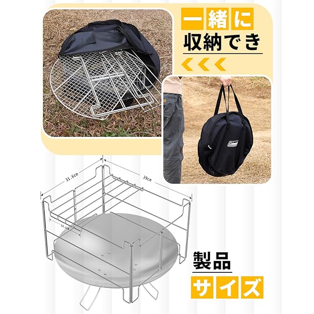 Coleman(コールマン)ファイヤーディスク 焚火台 専用 五徳 1秒展開 3段火加減調整 コールマン ファイアーディスク 五徳 ファイアーディスク 焚き火 携帯便利 コンパクト キャンプ アウトドア ステンレス製 (直径40cm ファイヤーディスク用)