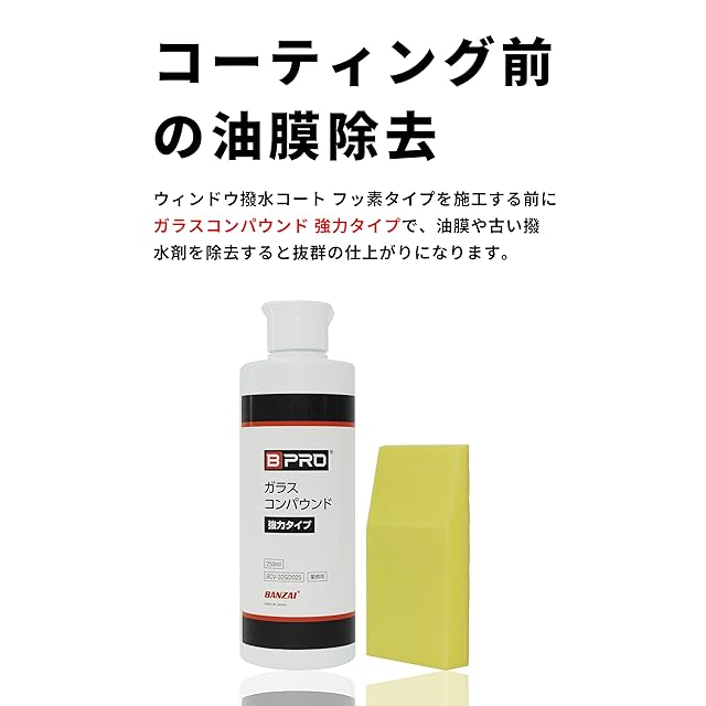BPRO 車用ガラス撥水剤 ウィンドウ撥水コート フッ素タイプ 180ml(パッド付) 洗車 フロントガラス リアガラス