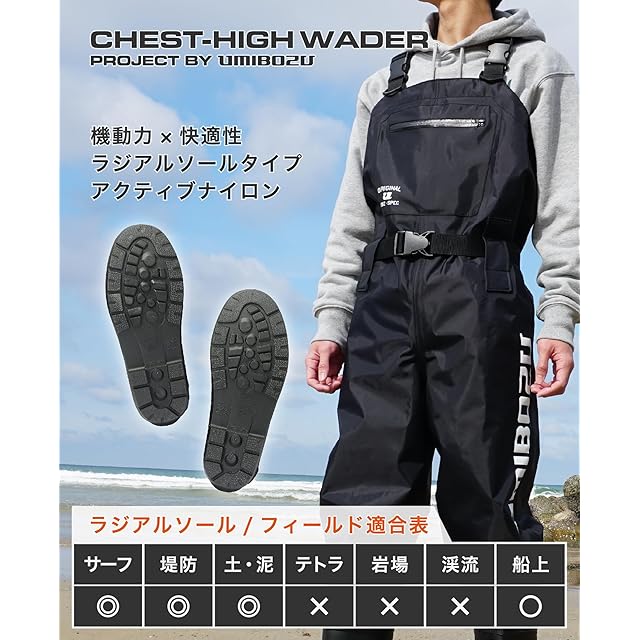 【ウミボウズウェーダー】サーフ釣りに特化したチェストハイウェーダー
