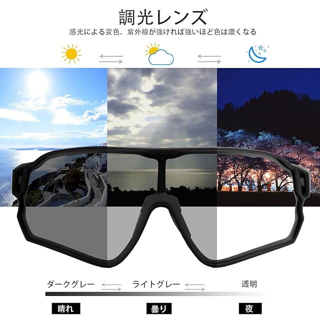 商品名:ロックブロス 調光サングラス 自転車 ロードバイク サイクルサングラス メガネ 軽量 紫外線カット 防風 アイウェア 登山 ランニング 通勤 ユニセックス