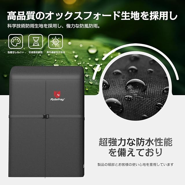 商品名:Rosefray タイヤラックカバー 420D 厚手 防水 屋外 8本 収納 防水 保管カバー 収納袋付き 110×75×145cm ブラック