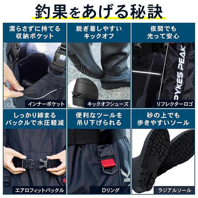 商品名:PYKES PEAK (パイクスピーク) ウェーダー 釣り ラジアルソール チェストハイ サーフ 選べる2タイプ 完全防水 ナイロン 内側がベタつかない