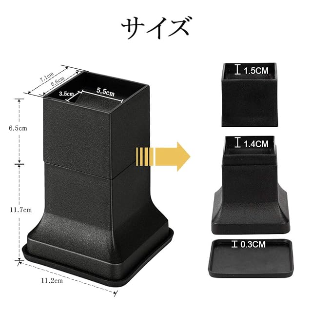 商品名:育のさち テーブル・ベッドの高さ調節が簡単にできる ベッドの高さをあげる足 4個セット 高さを上げる 高さ調節脚 こたつ 継足し 継ぎ足 テーブル脚台 継ぎ足 テーブル脚台 高さ調整 3Way 5cm 10cm 15cm 暖房器具 (耐荷重1000kg) ブラック 凹みがある