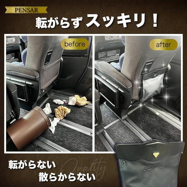 ✅【転がらない!】 カー用品の定番でもある置き型タイプのゴミ箱比べて、フックでしっかり固定されることでごみ箱が転がり車内にゴミが散らかる心配もありません。
