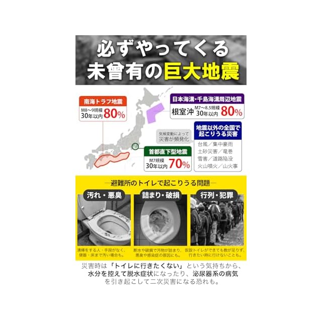 医師・防災士監修! 消臭・抗菌・簡単すぐに使える・水がなくてもトイレができる 素早く固まって臭いもれ無し 処理袋つきで使用後も清潔 「災害」「断水」「介護・嘔吐」「停電」「渋滞」「アウトドア」