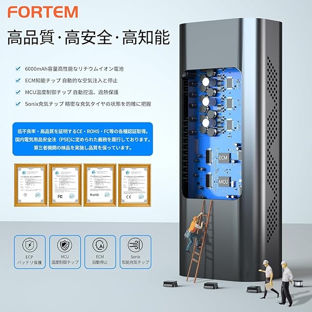 【Type-C充電&6000mAh大容量】本スマート空気入れでは、6000mAh高性能18650リチウムイオン電池を採用することにより、他社ニッケル電池の約2倍もの電池寿命で安定した空気 流量を長期間維持します。エアーポンプはType-C充電式で、わずか3時間で充電が完了できます。さらに、モバイルバッテリー機能も付きます