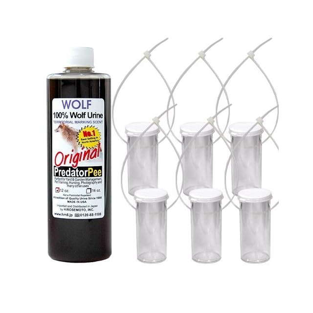 天然狼尿100%!イノシシ、シカ、サル、クマなどの天敵の狼(ハイイロオオカミ)の</br>尿100%の動物除けリキッドです。</br></br></br>野生の動物はテリトリーにマーキングをして互いの存在を</br>知らせる習性があります。</br></br>この【野生のマーキング習性を利用】して、狼が天敵となるクマ、鹿、イノシシなどの</br>動物を寄せ付けない、有効的な獣害被害対策商品です。</br></br>【ハイイロオオカミの尿だけを使用】し、添加物などを一切使用して</br>いませんので、動物、自然に優しい天然の動物プロテクションです。</br></br>※JAS有機適合資材です。</br></br>■安心して使える!天然素材100%の狼尿</br></br>狼尿は単に動物の侵入を防ぐのではなく、</br>【天敵の臭いにより生活圏を住み分ける画期的な商品】です。</br></br>多くの害獣の天敵であるオオカミの尿で、</br>作物や民家へ動物を近づけなくします。</br></br>狼尿は狼を傷つけることなく、</br>自然の排泄により尿を採取しています。</br></br>対象害獣を近づけたくないエリアに臭いを発散させるだけの簡単使用です。</br></br>設置に関わるコストや費用、手間が少ないのが特徴で、</br>女性や高齢者にも簡単にご利用いただけます。</br></br>必要な場所に必要な量を使用するので、無駄な手間とコストをかけません。</br></br>