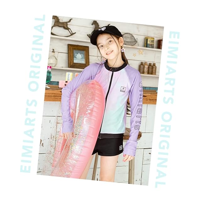 商品名:[アリサナ] ラッシュガード キッズ 長袖 フードなし 女の子 小学生 UPF50+ 02.ミント 150cm