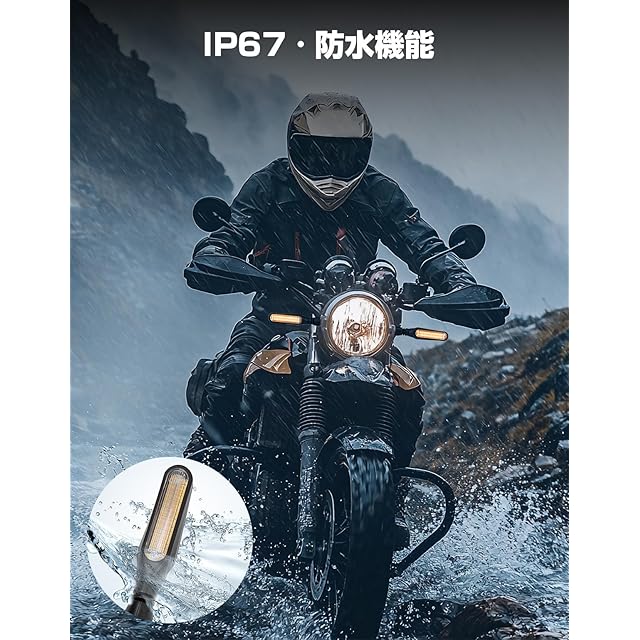 【IP67防水レベル】KEMIMOTO バイク ウインカーはIP67防水等級を備えており、短時間の浸水にも耐え、雨天や洗車、湿気の多い環境でも問題なく使用できます。雨の日でも大丈夫ですが、ずっと水に浸すことはできません。
