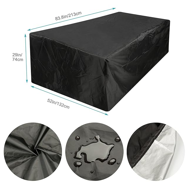 使用範囲:ガーデン屋外用、防水防塵防風多機能家具カバー、雨/雪/太陽/鳥の糞/樹液/汚れから保護、室外機カバー/ファニチャー/テーブル/ソファ/洗濯機/テレビなど用。サイズ:213×132×74cm。