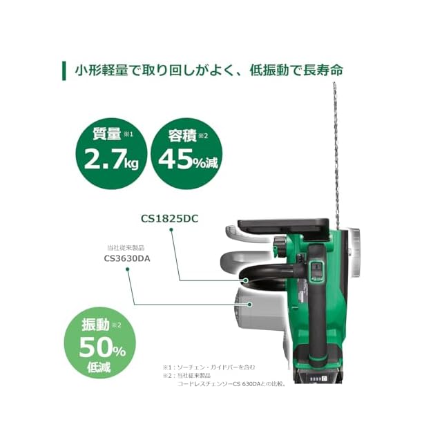 HiKOKI(ハイコーキ) 18V コードレスチェーンソー バーサイズ 250mm 蓄電池1個・充電器付き CS1825DC(BC)
