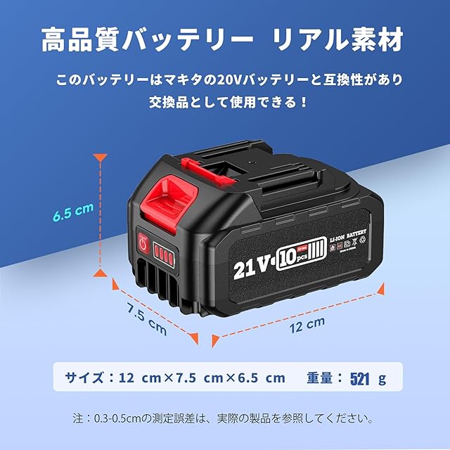 【高耐久性&高品質】難燃性のPC+ABSを利用した外殻、耐久性が高く、長期間使用可能です。高品質なセルが採用されて、制御基板には多重保護回路を搭載!過電流保護、過電圧保護、過充電防止、過放電防止、短絡保護、過熱保護など対応しています。 我が社の高性能マキタ21 v互換バッテリーは自然放電が少なくて、長持ちできます。商品の耐久性や性能は純正品と遜色がないです。