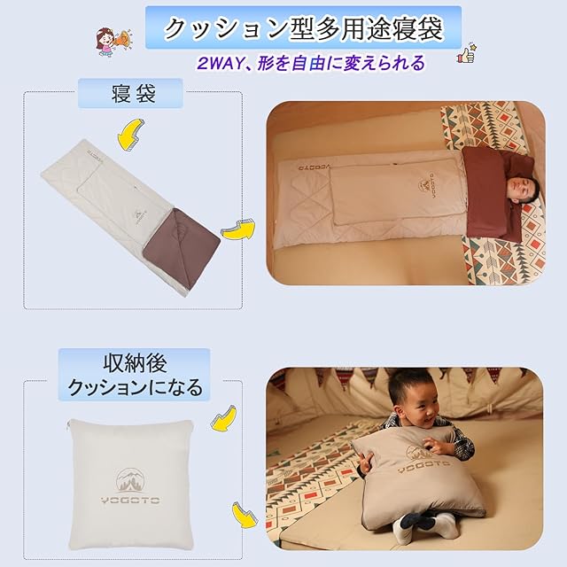 YOGOTO 寝袋 夏用 封筒型 クッション型 シュラフ 連結可 オールシーズン スリーピングバッグ コンパクト 抱き枕 丸洗いok 軽量 両用 中綿 保温 アウトドア キャンプ 2WAY 寝具 便携式 仮眠 車中泊 お昼寝 防災用 避難 室内 敷布団 掛け布団 座布団 子供用 収納簡単 春用 秋用 快適温度10℃ グレー