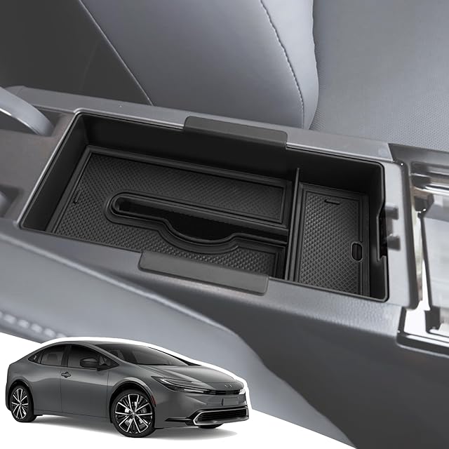 LANGBEAN トヨタ プリウス 60系 2024年式適用 コンソールボックス プリウス PHEV コンソールトイレ 小物収納 内装パーツ カスタムパーツ プリウス アクセサリー 収納 ボックス 滑り止め ラバーマット付き(ブラック)
