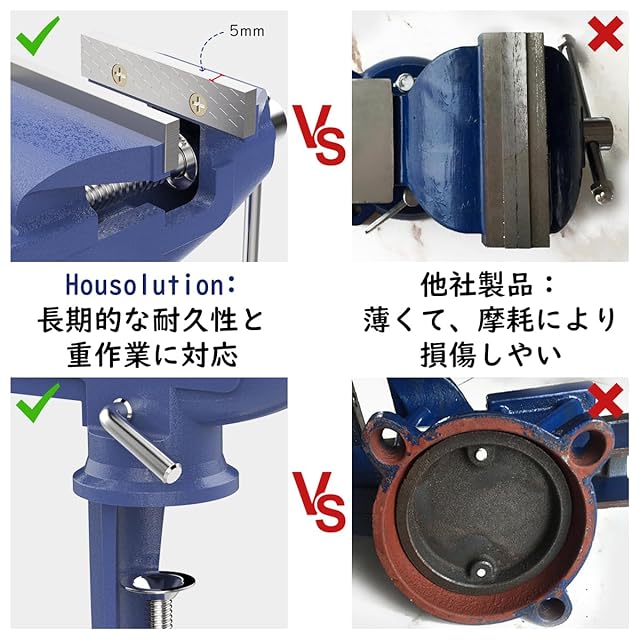 商品名:バイス 万力 Housolution 卓上バイス クランプ万力 70mm 使いやすい 360°回転式 角度任意調整可能 切削 研磨 切断 加工 固定 締め工具 青色