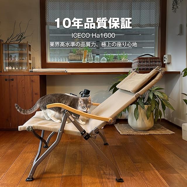 ロースタイル ICECO 4段階リクライニング式 ハイバックチェア 10年品質・耐荷重265KG・1600D座面・A7075アルミ合金フレーム・ハイ/ローバック切替可能 キャンプ 折りたたみ ガーデン 室内用(ベージュ)
