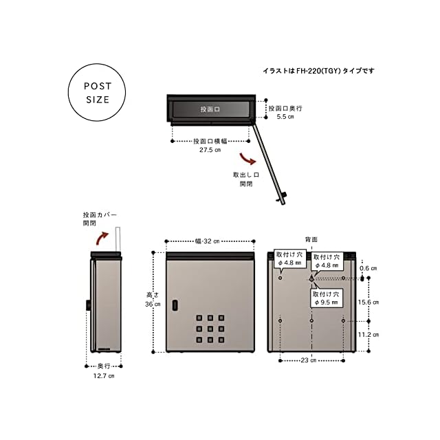 商品名:グリーンライフ(GREEN LIFE) ポスト 壁掛け メール便対応 角形2号封筒対応 スチール製 上入れ前出し 横開き チタングレー FH-220(TGY)
