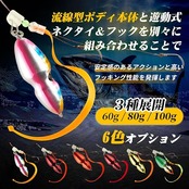 60g・80g・100g ウェイト3種展開、水深や潮の流れに合わせて使い分けてください。