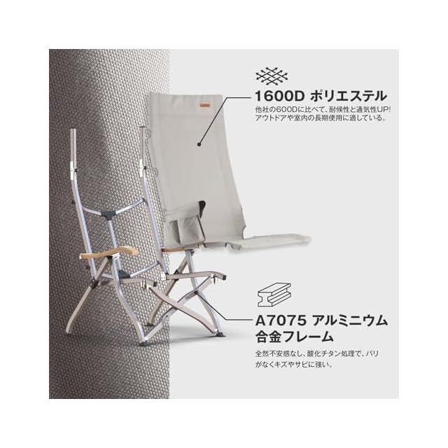 商品名:ロースタイル ICECO 4段階リクライニング式 ハイバックチェア 10年品質・耐荷重265KG・1600D座面・A7075アルミ合金フレーム・ハイ/ローバック切替可能 キャンプ 折りたたみ ガーデン 室内用(グレー)