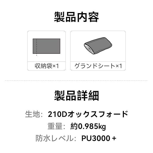 【素材】 シートはPE(ポリエチレン)製で、防水性を備えています。