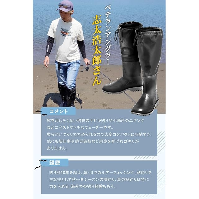 商品名:unizom ウェーダー 【専門家推奨 新聞掲載】 釣り ながぐつ 作業用 完全防水 丈夫 軽量 防災 農作業 メンズ レディース 折りたたみ 長靴 ひざ下 胴長 ニーブーツ (ブラック, 25.5㎝~26cm)