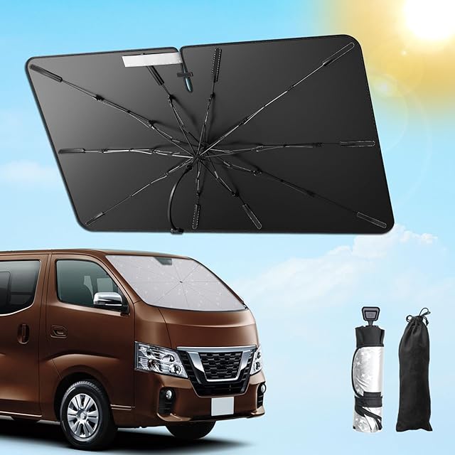 2025【SXCY】日産 キャラバン NV350 サンシェード nv350車 フロント用 キャラバン NV350 サンシェード 傘型 遮光 遮熱 紫外線遮蔽 取付簡単 折り畳み式 日除け キャラバン nv350 アクセサリー さんしえーど 車フロント 熱中症対策 傘型収納 NV350車 アクセサリー