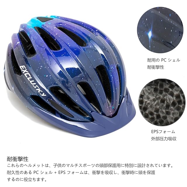 商品名:自転車 ヘルメット Exclusky 自転車 ヘルメット 子供 軽量ヘルメット 自転車 サイクリング ヘルメット 通気 3D保護クッション 洗濯可能 調整可能 50-57cm 幼児 小学生…