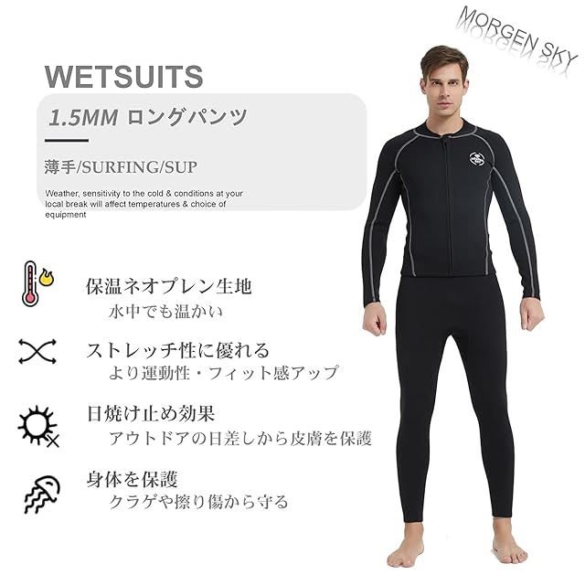 MORGEN SKY ウェットスーツ ロングパンツ SUP 1.5mmネオプレン 保温速乾 伸縮性 フィッシング お釣り 沢登り サーフィン カヤック サウナ BKM2002 (L, メンズ用)